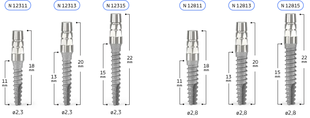 MINICARE implant surface is of a hybrid type and is achived through a complex process with particles sandblasting and thermal etching SBTE Active (*SLA™) for the creation of micropores (sized 2-7 microns). This unique process creates a high surface area differentiation, increases the three-dimensional (3D) surface area and thus, enables a more intense absorption of blood and plasma directly into the implants micropores immediately after the implant is placed. The microstructure and roughness properties of the implant surface created by the sandblasting and double acid etching process is biocompatible and osseoconductive with immense influence on the initial contact with the host bone.